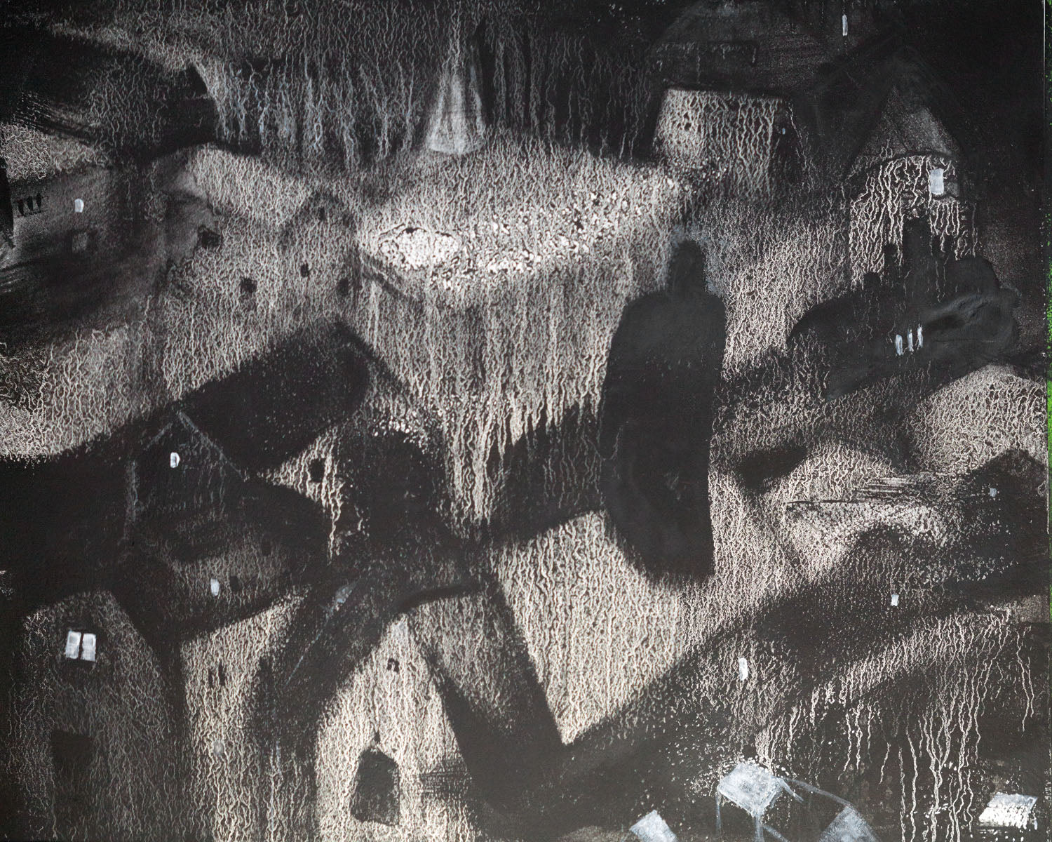 A spirit, perhaps an ancient being, a roaming soul, or the double of a witch traveling to the Sabbat, wanders over the night town, musing as they drift on silent currents of air and energy. Each lit window represents someone who believes they are alone, when in fact, we are all alone together.